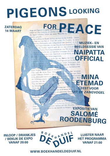 We openen de expositie Pigeons looking for peace van beeldend kunstenaar Salomé Roodenburg. De expositie zal de gehele boekenweek te zien zijn.