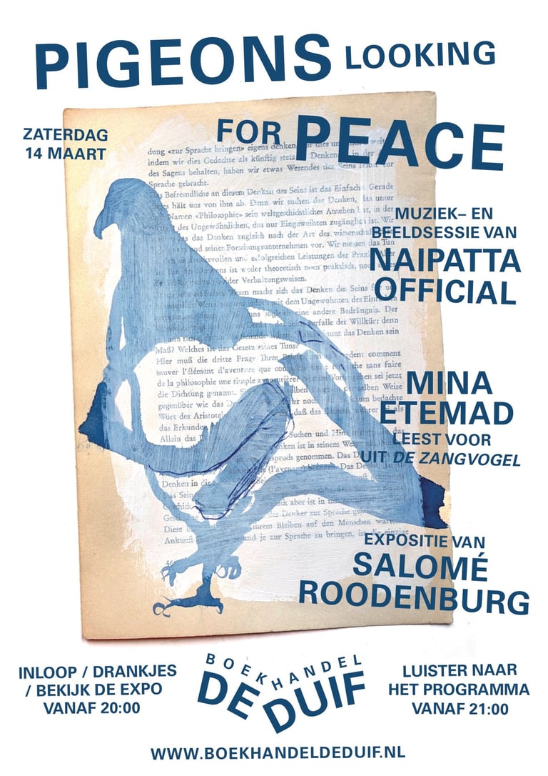 We vragen een donatie van € 5 als entree. Niet verplicht als je het niet kan missen. Laat graag weten of je komt door een mail te sturen naar bibi@boekhandeldeduif.nl